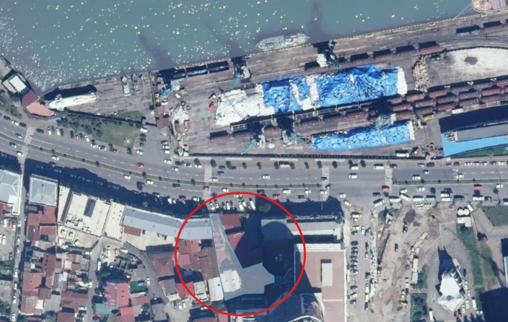 Prime beachfront location in Batumi, situated directly along the coastal zone opposite the port area.